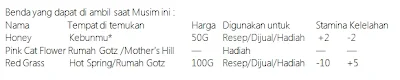Perkiraan biaya yang dikeluarkan : 13700G + 370 kayu, 18700G + 990 kayu( termasuk Ransel ). 18700G + 990 kayu ( termasuk Kandang Ayam ), 21700G + 990 kayu (termasuk kandang Ayam dan Ransel ).